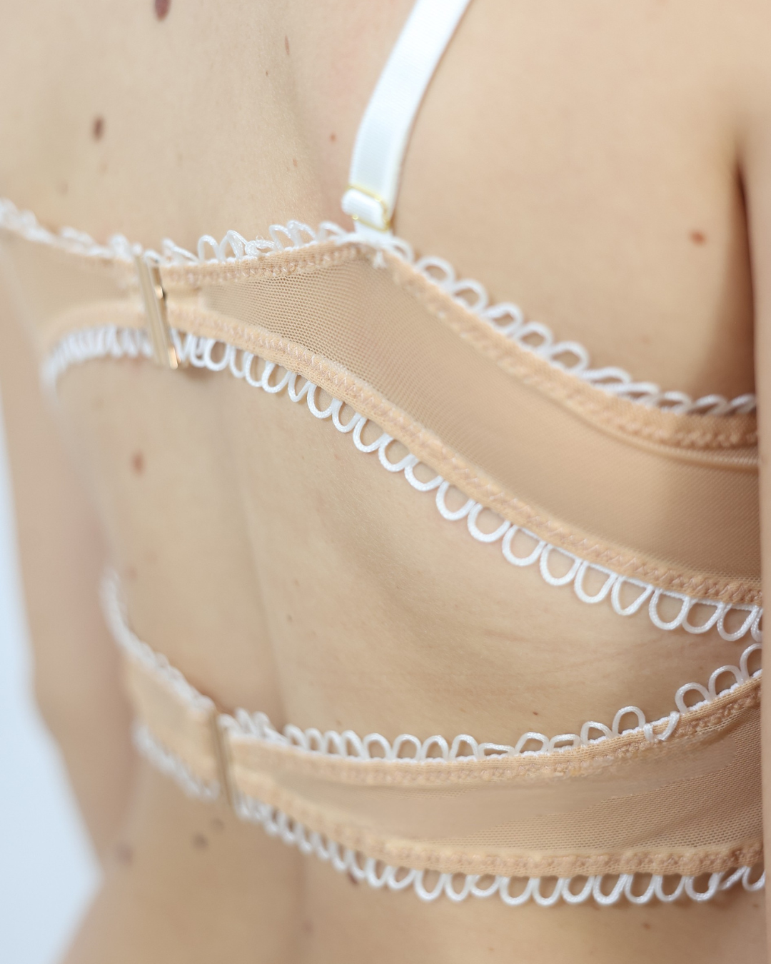 La bralette Magnolia è un inno alla delicatezza che seduce. Pizzo bianco ricamato con dettagli floreali intricati, coppe morbide con ferretto per un comfort assoluto. Il filo in pizzo ai bordi aggiunge quel tocco di sensualità che ti farà sentire irresistibile.